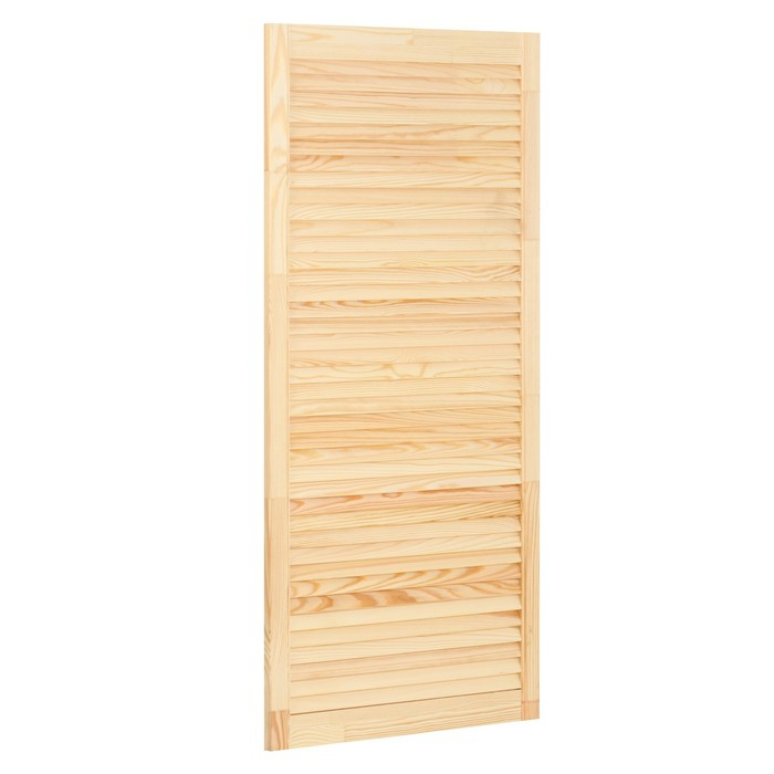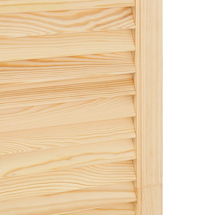 Жалюзийная дверь изготовлена из сосны. Такие двери используются в помещениях, где требуется постоянное проветривание. Также применять жалюзийный фасад можно для шкафов, тумбочек для ванной комнаты, на кухне, балконе или в кладовке. С помощью изделия легко создать уникальный дизайн мебели или обновить её внешний вид.