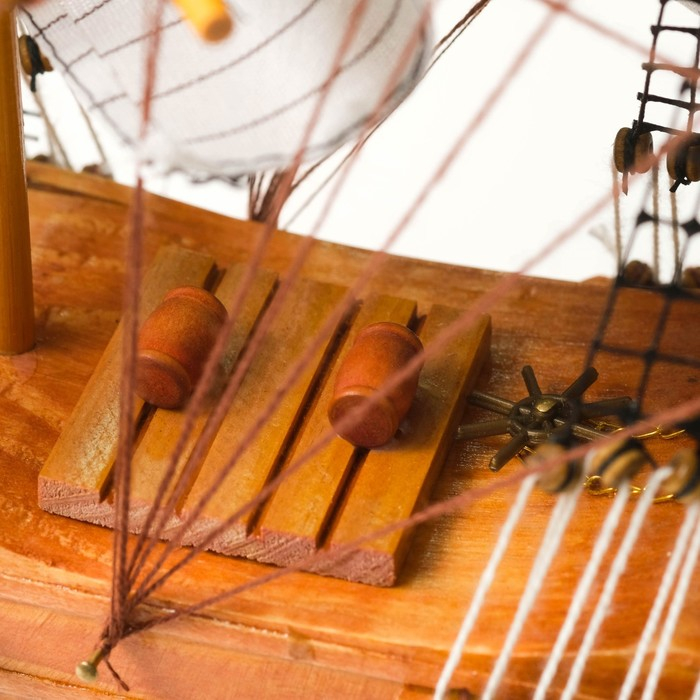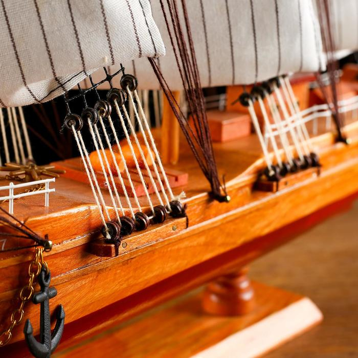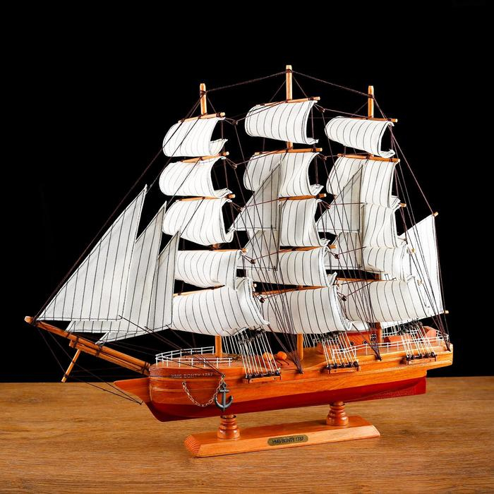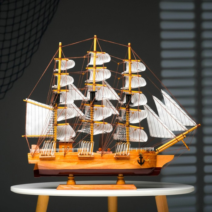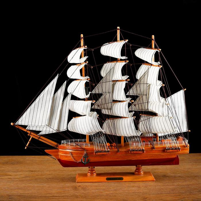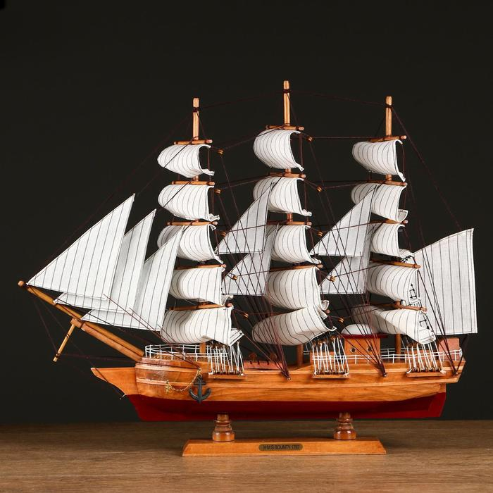 Корабль сувенирный большой «Крамбол», борта светлое дерево, паруса белые, микс 57×9×49см
