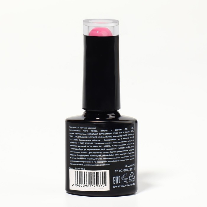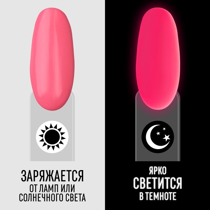 Гель лак для ногтей «GLOW IN THE DARK», 3-х фазный, 8 мл, LED/UV, люминесцентный, цвет розовый пунш (27)