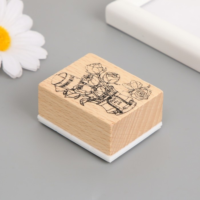 Печать дерево, резина "Цветы в ведёрке" 5х4х2,5 см