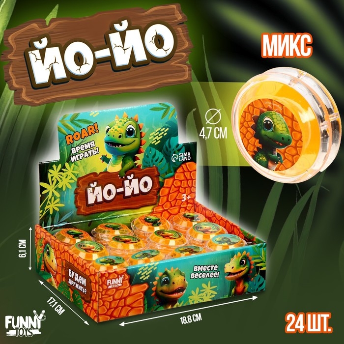 Йо-йо «Динозаврики» — это игрушка, которая подарит детям радость и разовьёт их мелкую моторику, координацию движений и ловкость. Это простой и увлекательный способ провести время на свежем воздухе или дома. Игрушка подходит как для начинающих, так и для тех, кто уже освоил основные трюки.