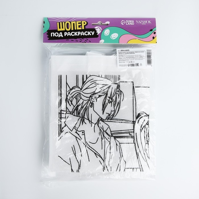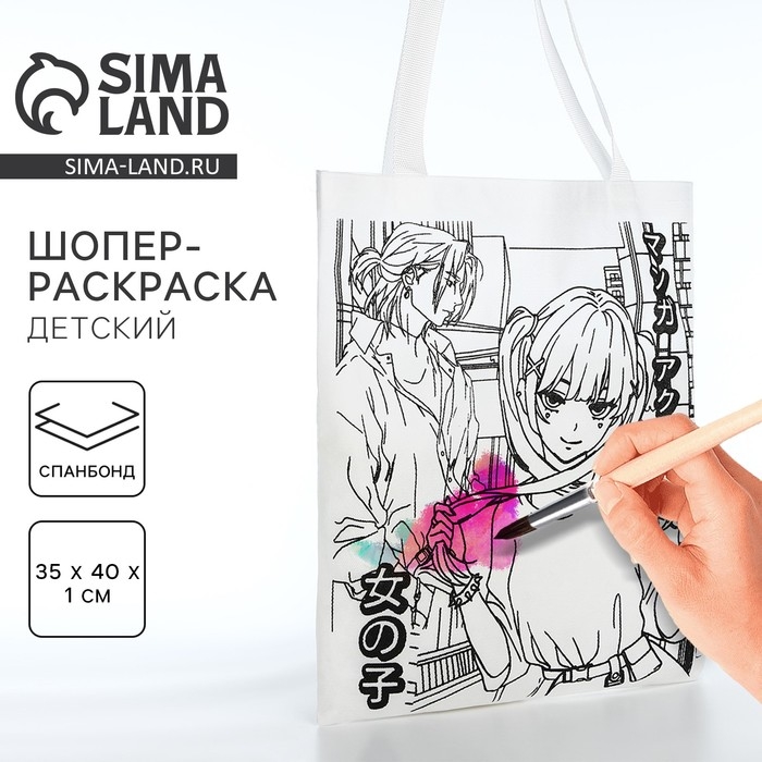 Шопер под раскраску "Девочка аниме", 35х40 см, спанбонд