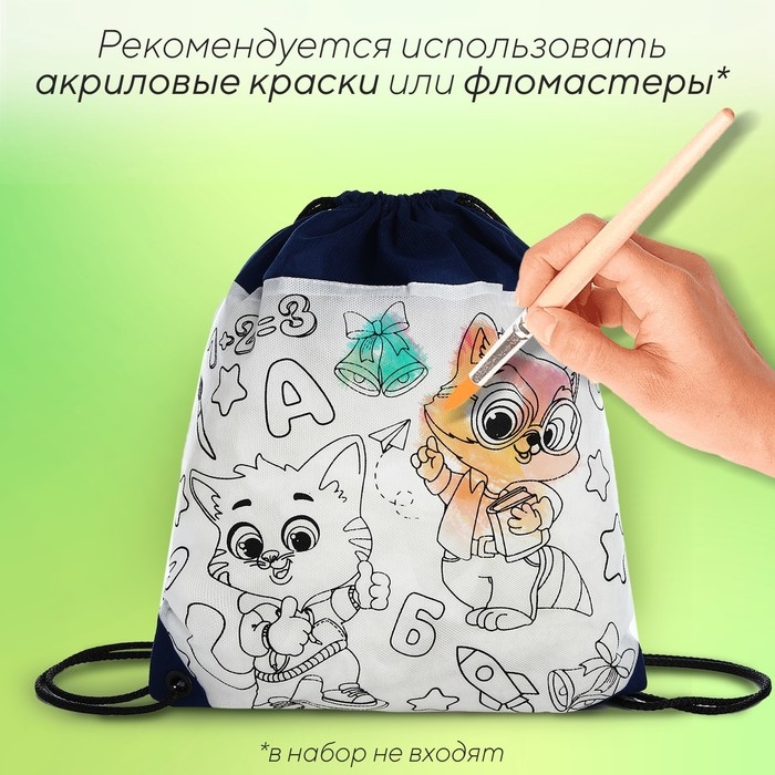 Мешок для обуви под раскраску «Зверята» 34х40 см, спанбонд