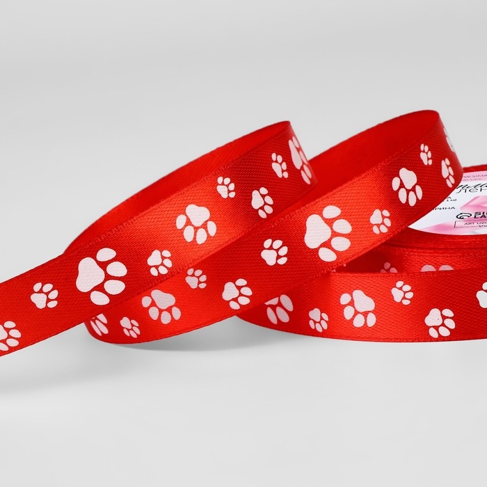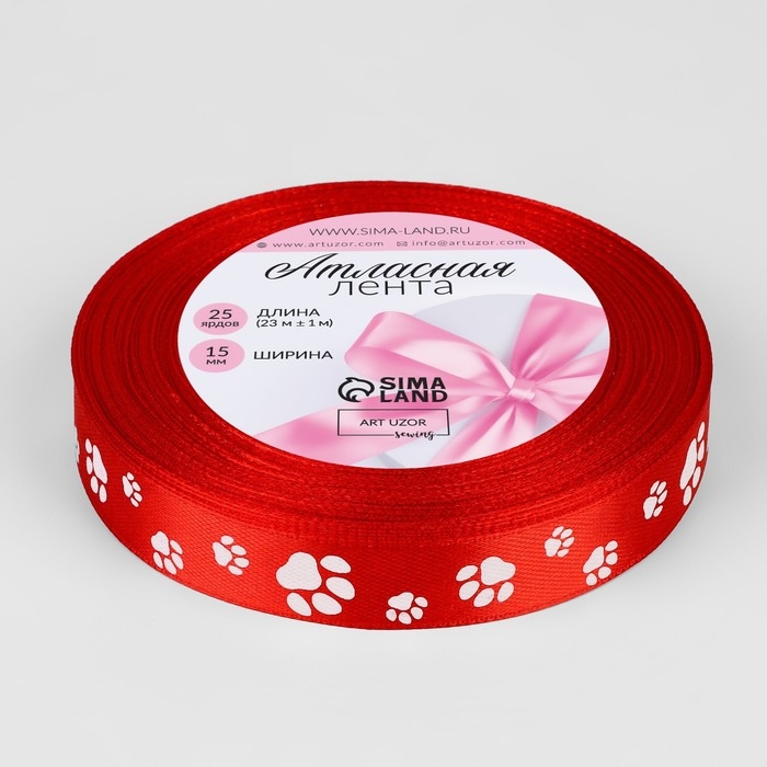 Лента атласная «Лапки», 15 мм, 23 ± 1 м, цвет красный №026