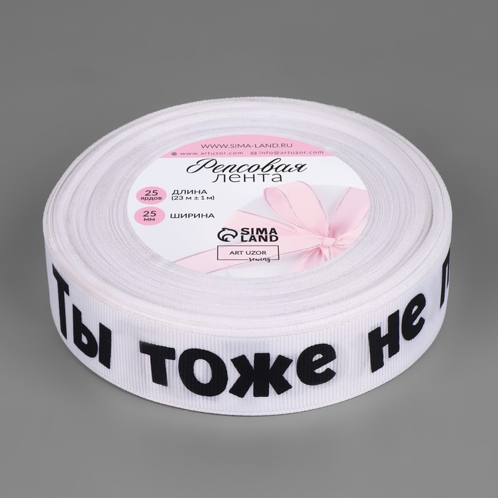 Лента репсовая «Не подарок», 25 мм, 23 ± 1 м, цвет белый№001