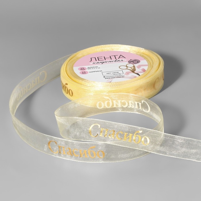 Лента капроновая с тиснением «Спасибо», 15 мм, 23 ± 1 м, цвет бежевый/золотой
