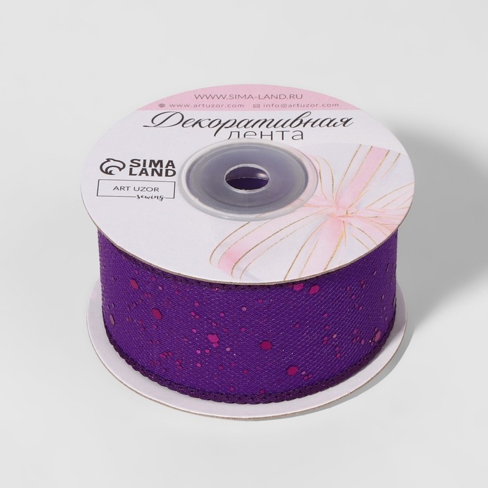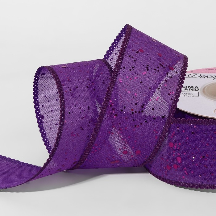Лента декоративная, с глиттером, 38 мм, 9 ± 0,5 м, цвет фиолетовый