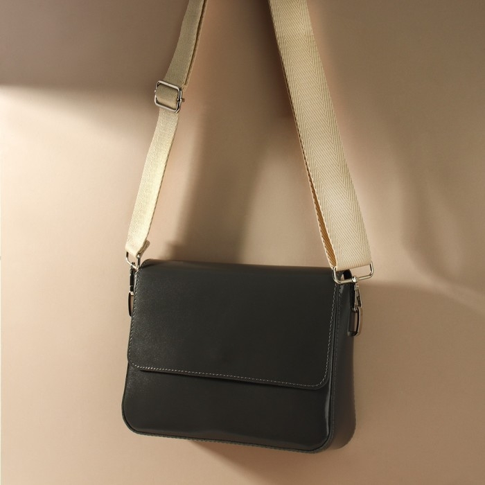 Ручка для сумки из натуральной кожи, регулируемая, с карабинами, 60 ± 2 см × 1,2 см, цвет чёрный/серебряный