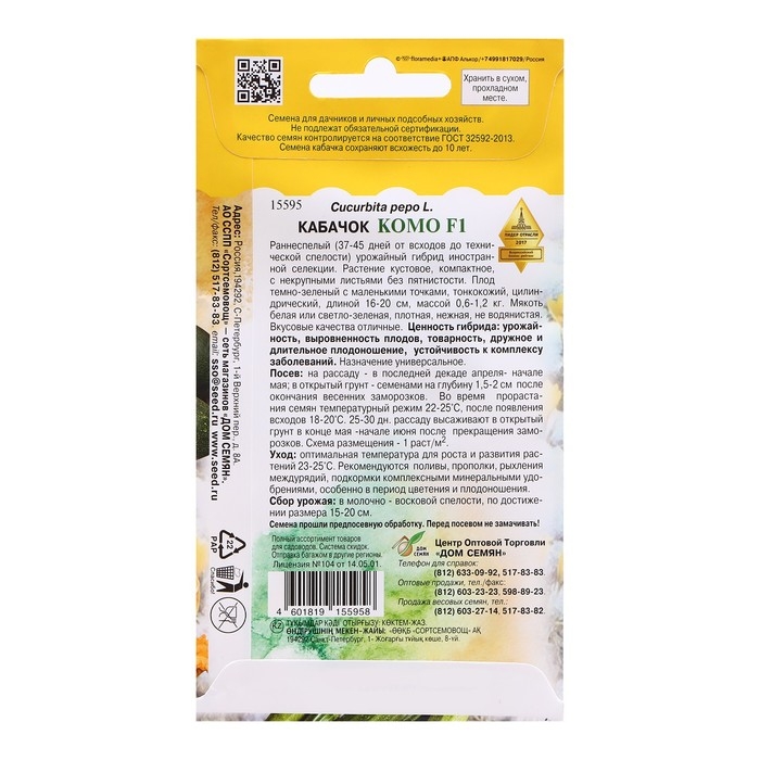 Новый ранний кустовой гибрид кабачка-цуккини для открытого грунта и пленочных теплиц. Неприхотлив в выращивании, устойчив к вирусным заболеваниям. Период от всходов до технической спелости составляет 40 дней. Выровненные глянцевые плоды цилиндрической формы и насыщенной темно-зеленой окраски хорошо хранятся, подходят для тушения, жарки замораживания и консервирования, приготовления пюре и диетических блюд. Мякоть сочная, слегка сладковатая, плотная, с высоким содержанием витаминов С, А, РР, витаминов группы В, минеральных веществ, клетчатки. Выращивать можно рассадным способом и прямым посевом в грунт.