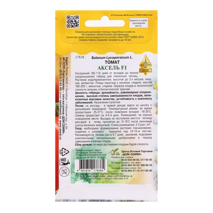 "Ранний срок созревания (65 - 69 дней), Плоды массой 280 - 350 г (в первой кисти может быть очень крупный - 450 - 500 г), Плоды прочные, плоскоокруглой формы, Отличается красивым, выраженным носом, Может формировать 10 кистей и более, Гарантированно высокая урожайность, Великолепная завязываемость при любых условиях, даже в экстремально-жарких, Производственные испытания на Юге России показали высокие результаты, Прочный, транспортабельный, Гибрид для пленочных теплиц. Пригоден для продленного оборота, Устойчивость TmVF2С5, TYLCV, Гибрид включен в Госреестр РФ в 2018 году.