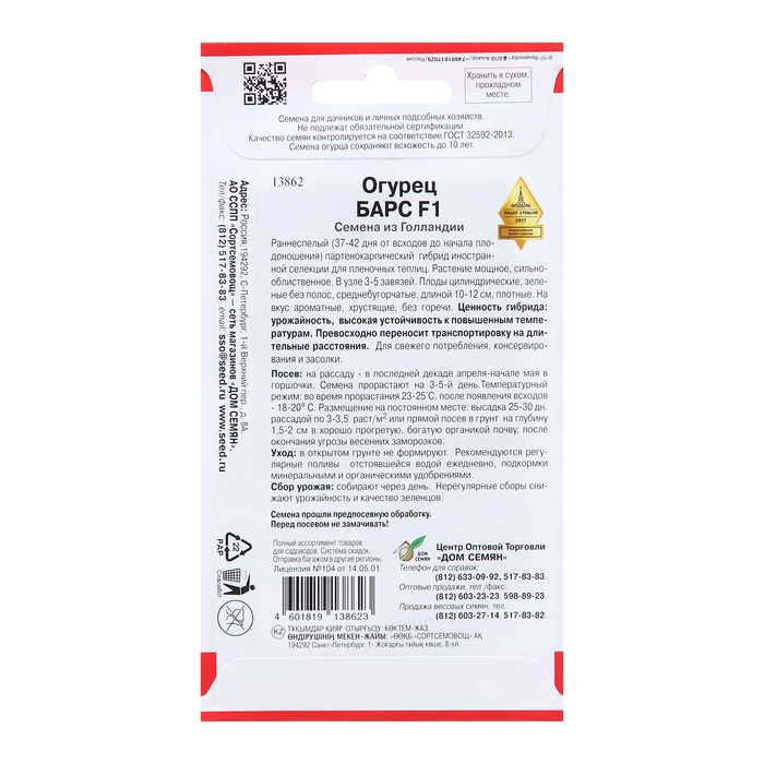 Семена Огурец "Барс F1", 6 шт