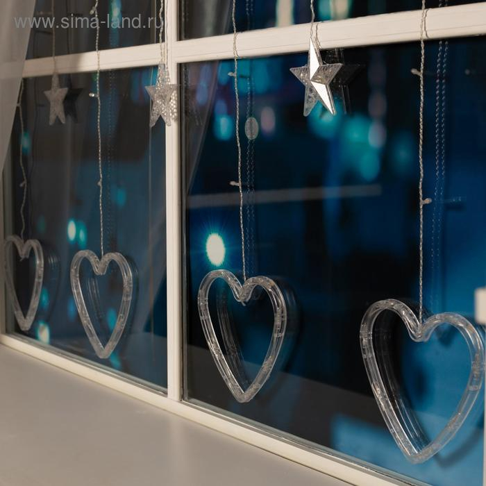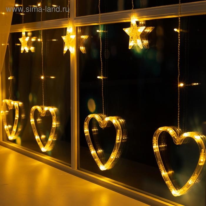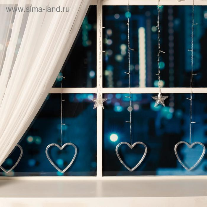 Гирлянда «Бахрома» 2.4 × 0.9 м с насадками «Сердце», IP20, прозрачная нить, 186 LED, свечение тёплое белое, 8 режимов, 220 В