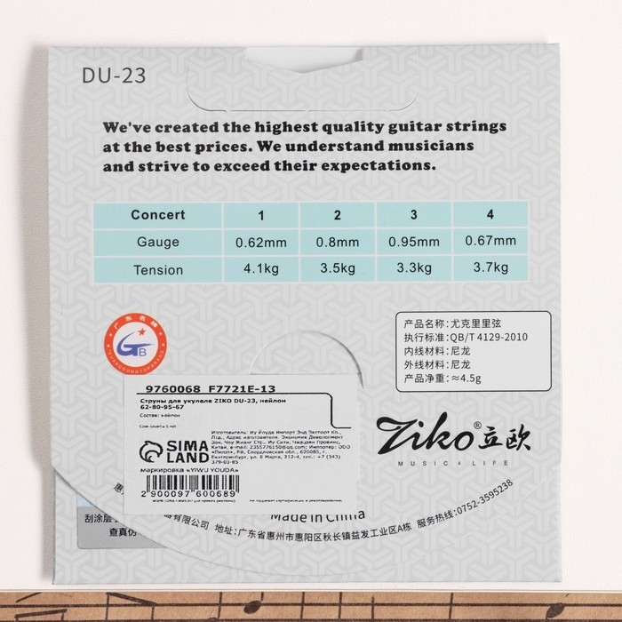 Струны для укулеле ZIKO DU-23, нейлон 62-80-95-67