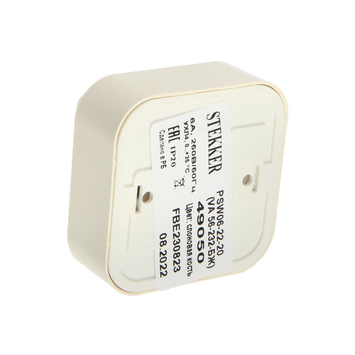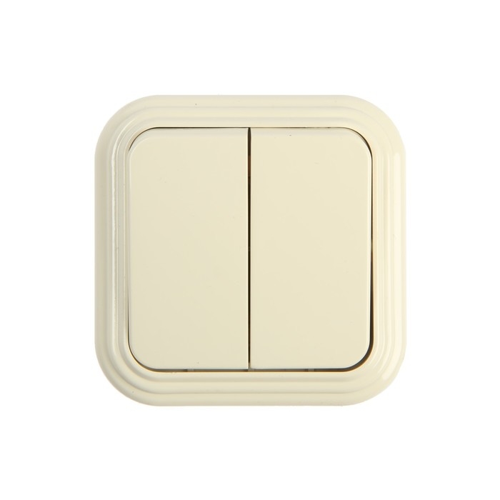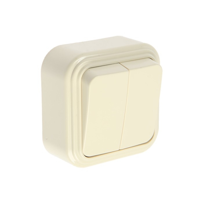 Выключатель двухклавишный открытой установки, 250В, 6А, IP20, слоновая кость, PSW06-22-20 ( 1022743