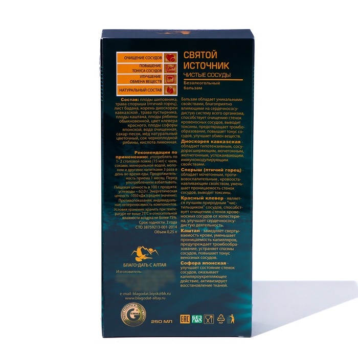 Бальзам Кавказкий "Святой источник" чистые сосуды, 250 мл