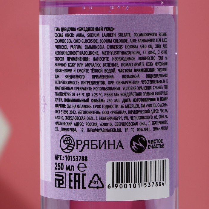 Гель для душа «Нежная забота», 250 мл, аромат сливочного десерта, ЧИСТОЕ СЧАСТЬЕ