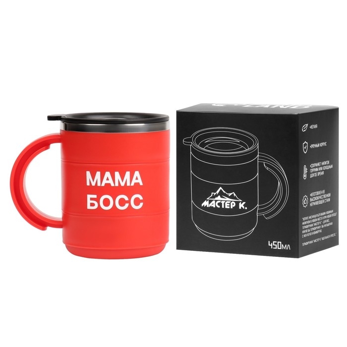 Термокружка, 450 мл, Поход "Мама босс", сохраняет тепло 2 ч, красная