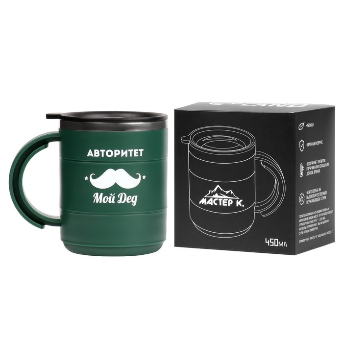 Термокружка, 450 мл, Поход "Для меня авторитет - дед", сохраняет тепло 2 ч, зеленая