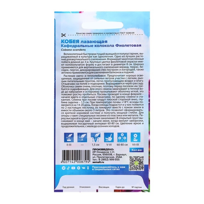 Семена цветов Кобея "Гжельские узоры", 0,45 г