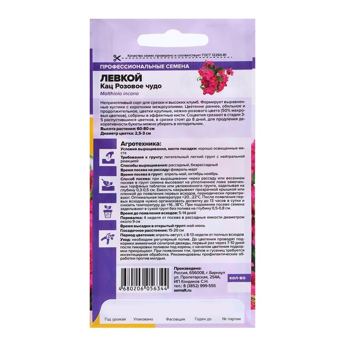 Семена Левкой Кац "Розовое чудо", 8 шт.