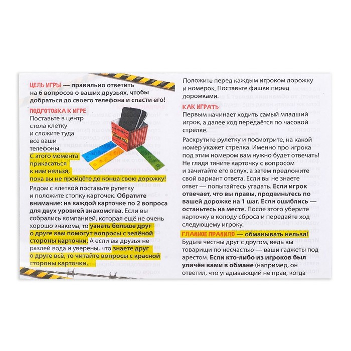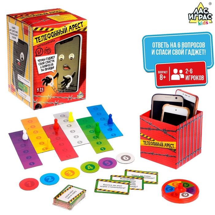 Настольная игра «Телефонный арест», в комплекте: 50 карточек, рулетка, игровые поля, 2-6 игроков, 8+