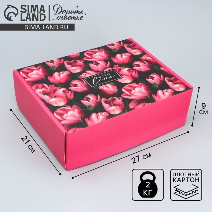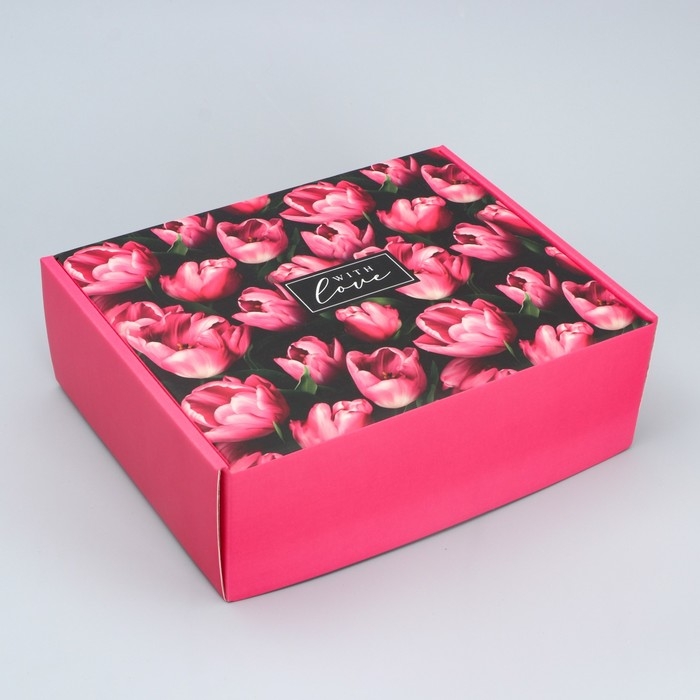 Коробка подарочная складная, упаковка, «Тюльпаны», 27 х 21 х 9 см