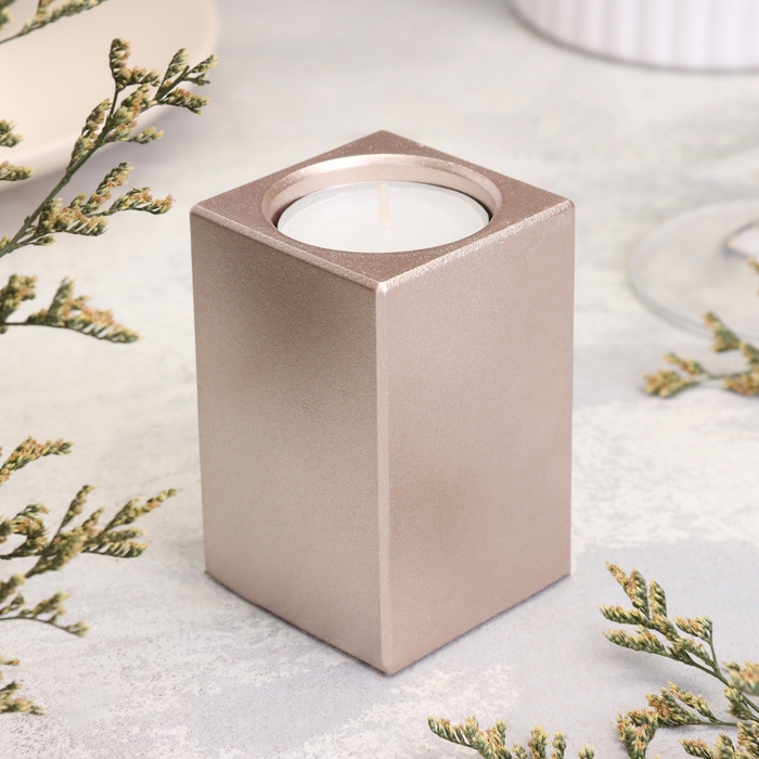 Подсвечник "Квадрат" из гипса, 5х8см, шампань