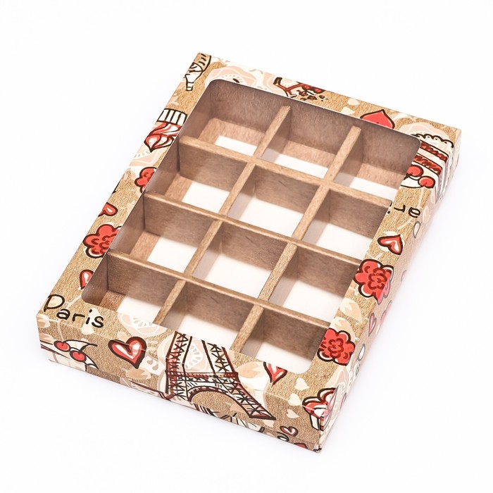 Коробка для конфет, коричневая, 12 шт, крафт, "Париж" 19 х 15 х 3,6 см