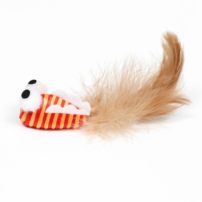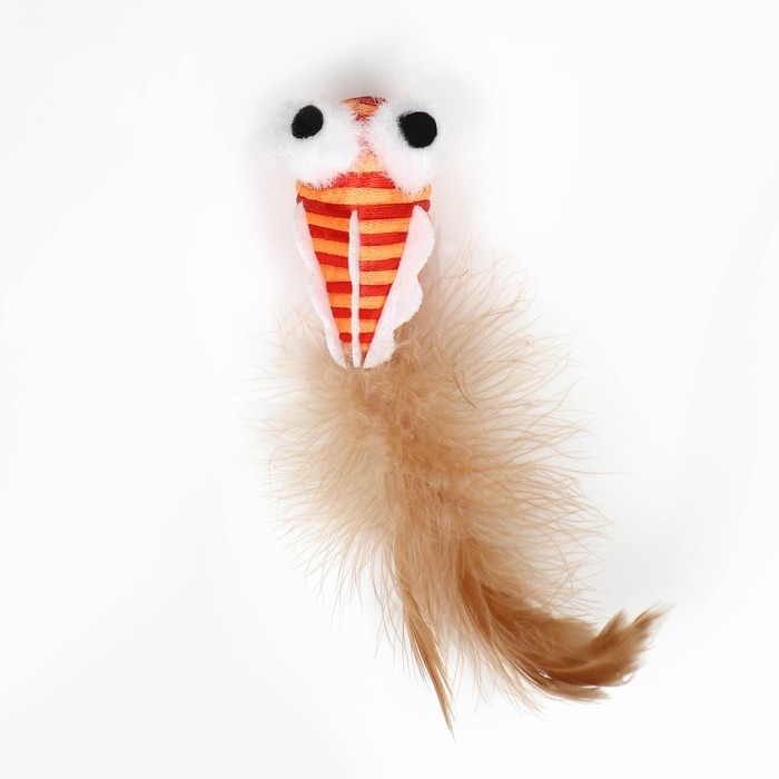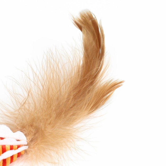 Игрушка для кошек "Полосатая рыба" с перьями, 5 см, оранжевая