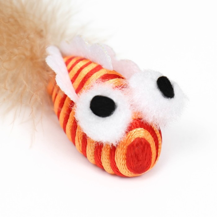 Игрушка "Полосатая рыба"- специально создана для привлечения внимания и развлечения кошки. Имеет форму маленькой мыши с пушистым хвостиком из перьев. Представлена в ярко оранжевой расцветке. Она привлекает кошек и вызывают у них игровую и восторженную реакцию.
