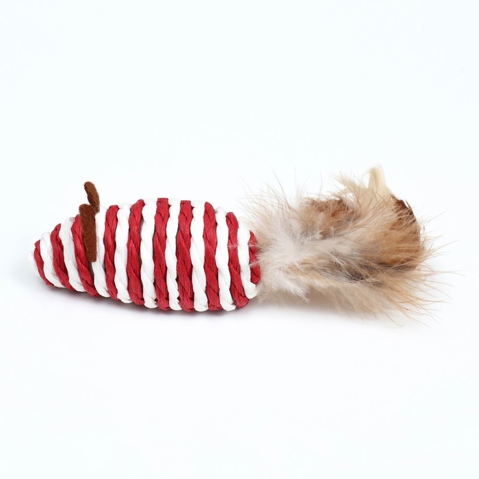 Игрушка для кошек "Мышь-погремушка", 7 см, бело-красная