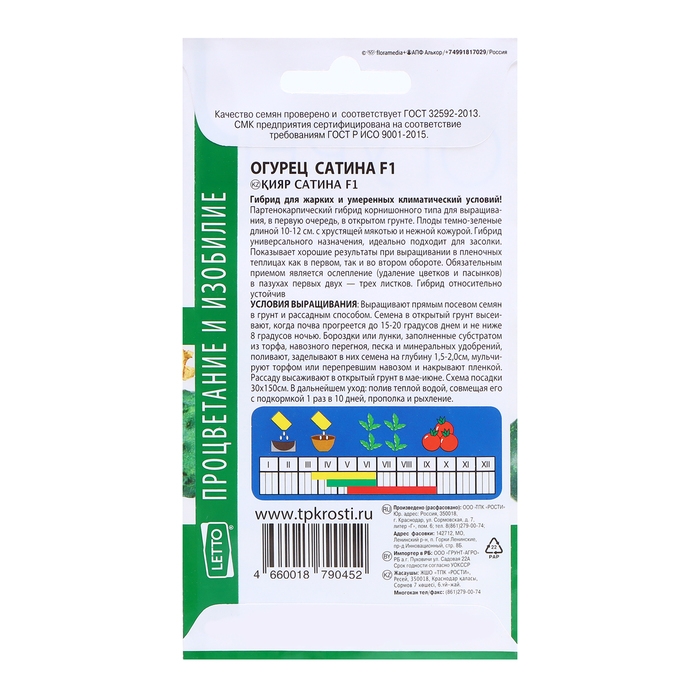 Семена Огурец Сатина F1, семена Агроуспех 7шт