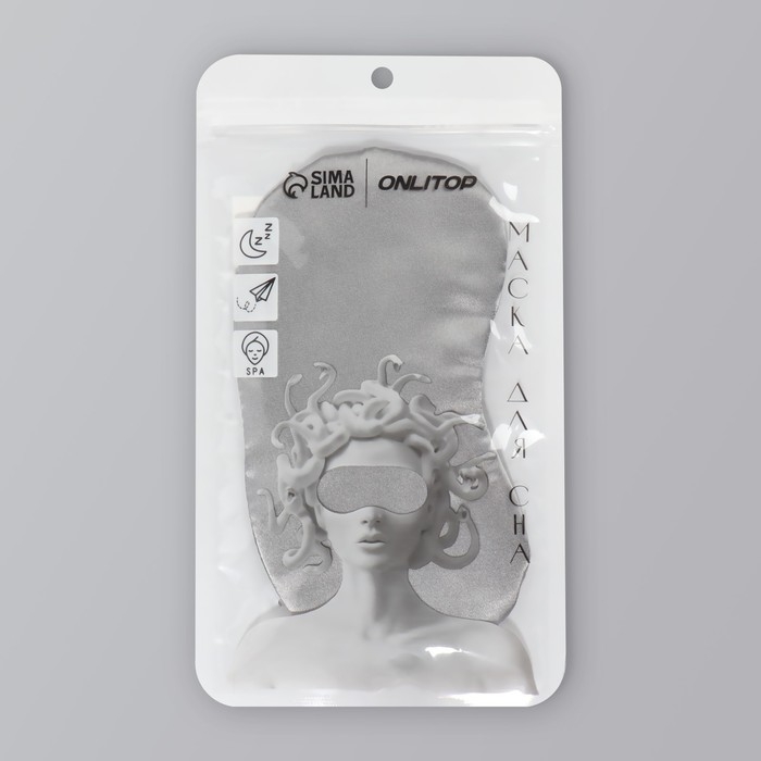 Маска для сна «ШЁЛК», 19 × 10 см, резинка одинарная, цвет серый