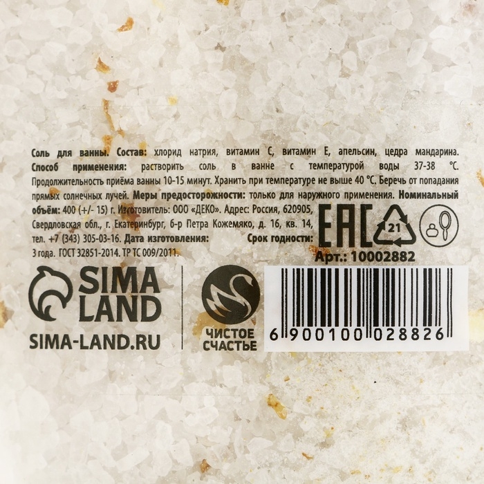 Соль для ванны с апельсином и цедрой мандарина, 400 г, Новый Год
