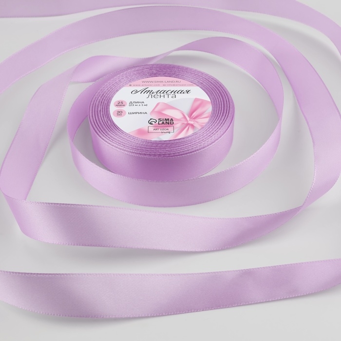 Лента атласная, 20 мм × 23 ± 1 м, цвет тёплый лавандовый №141