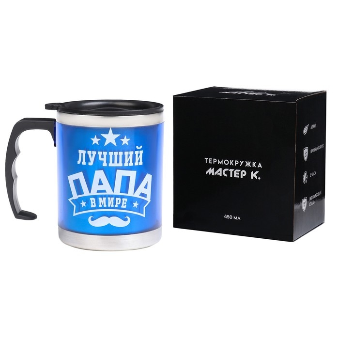 Термокружка "Мастер К" 450 мл (0.45 л) это яркое решение для любителей чая, кофе, травяных, ягодных и фруктовых заварок. Она позволяет не только согреться горячим кофе, чаем, матчей, какао, но и идеально подходит для прохладных напитков: чай со льдом, смузи или айс-кофе, которые вы можете взять с собой куда угодно.