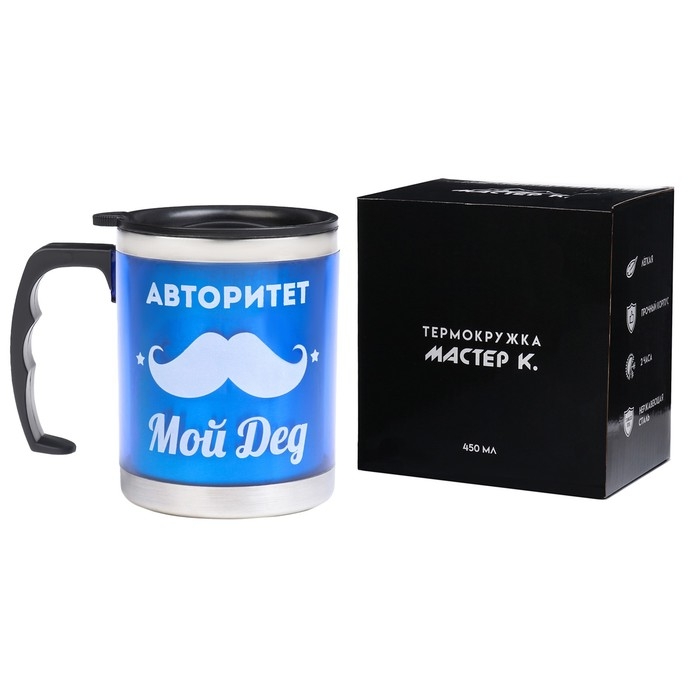 Термокружка "Мастер К" выполнена на основе двухслойной конструкции из пластика снаружи и нержавеющей стали внутри, при горячих напитках кружка не будет нагреваться и вам будет комфортно держать ее в руке. Вставная крышка оснащена силиконовым уплотнителем, небольшим отверстием (поильник), которое оснащено пластиковой задвижкой от случайного выплёскивания жидкости. При желании вы можете снять крышку и использовать ее без нее. Классическая форма стакана обеспечит удобство использования, а авторский дизайн подчеркнёт индивидуальность обладателя.