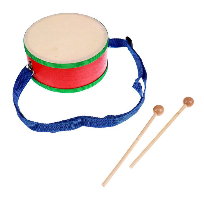 Игрушечный барабан, с палочками, на ленте, бумажная мембрана, размер: 15 × 15 × 7 см