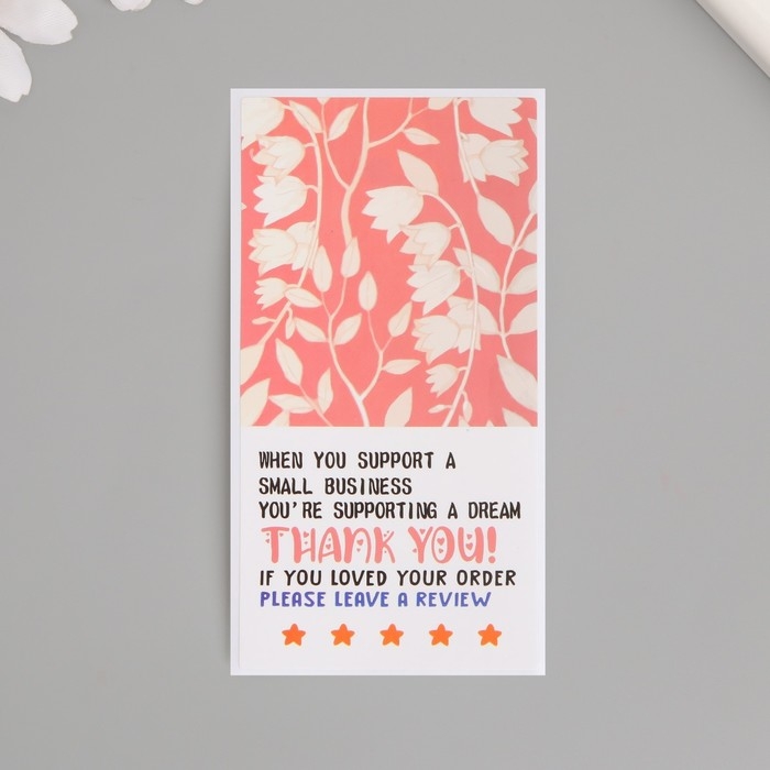 Наклейка бумага благодарность "Цветы на ветке" набор 50 шт 10х5 см