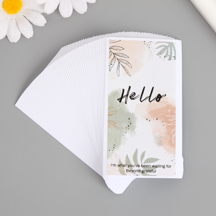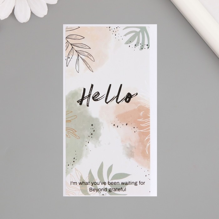Наклейка бумага благодарность "Привет. Веточки" зелено-бежевая набор 50 шт 10х5 см