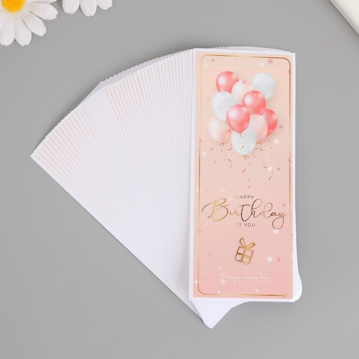 Наклейка бумага "С днем рождения. Шарики" розовая набор 50 шт 15х6 см