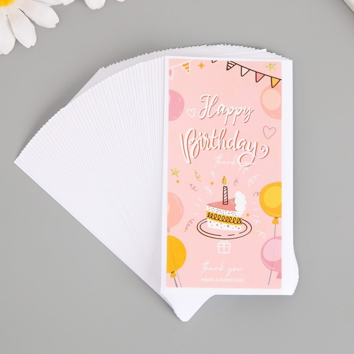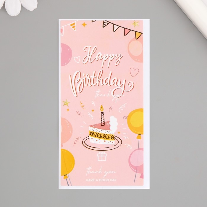 Наклейка бумага "С днем рождения. Торт" набор 50 шт 10х5 см