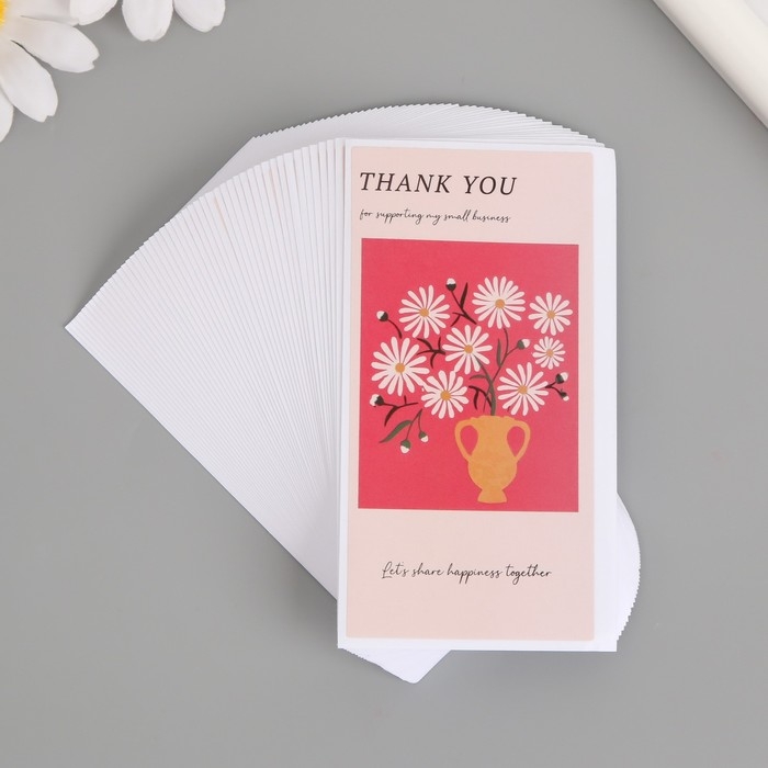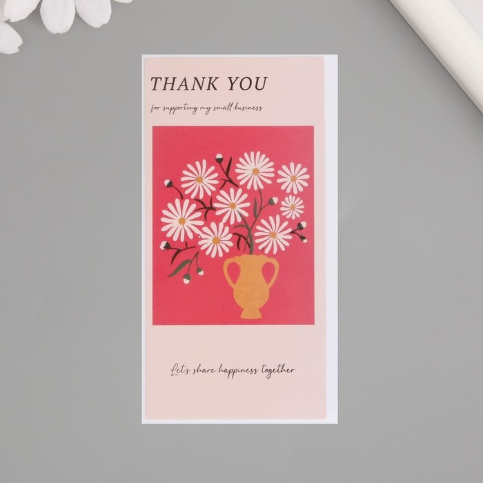 Наклейка бумага благодарность "Ромашки в вазе" набор 50 шт 10х5 см