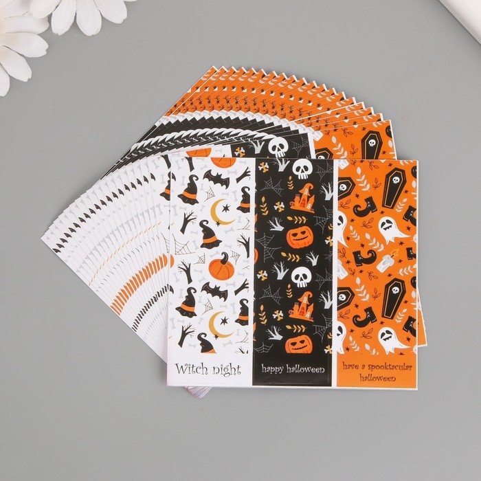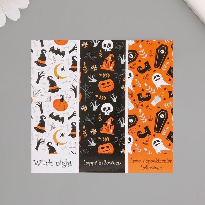 Наклейка бумага "Шляпы ведьм, тыквы, призраки" набор 20 шт 10х9,2 см