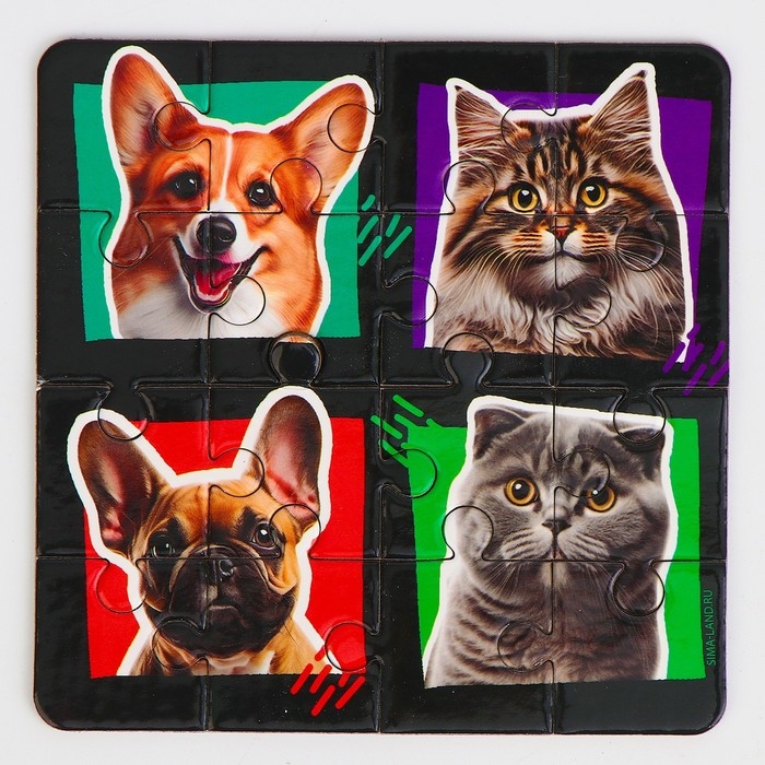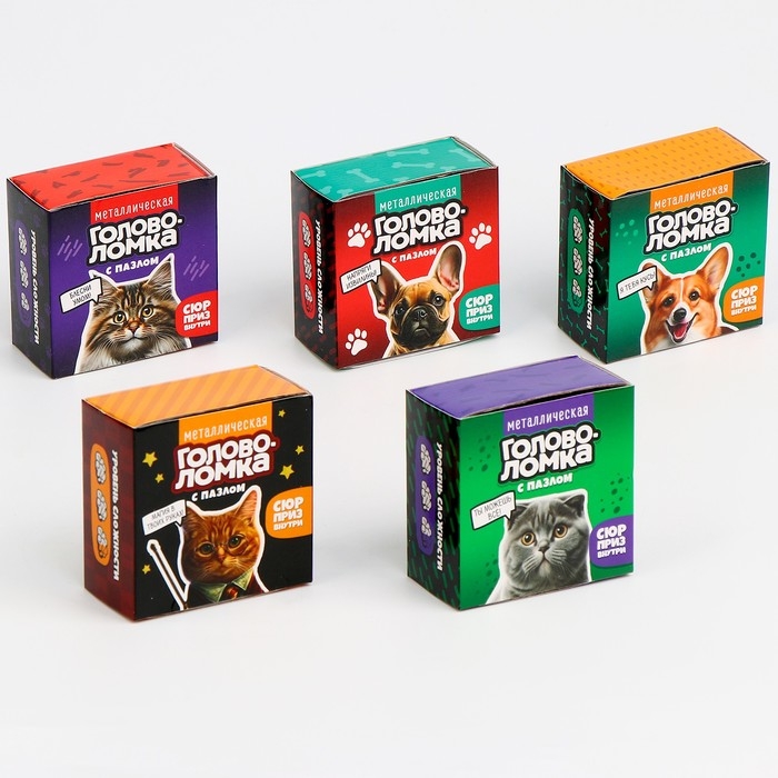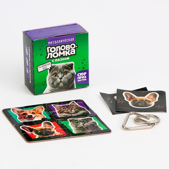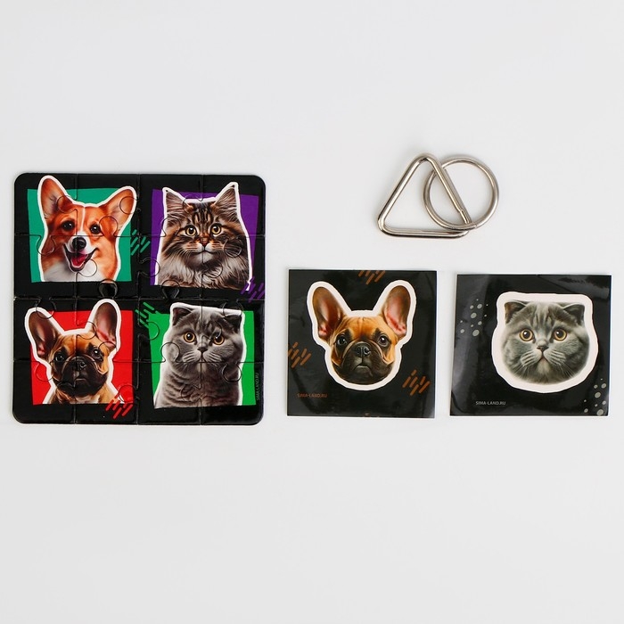 Металлическая головоломка с пазлами и наклейками "Котики, собачки", МИКС