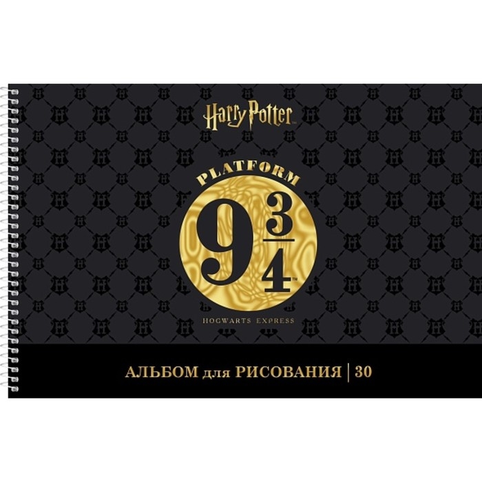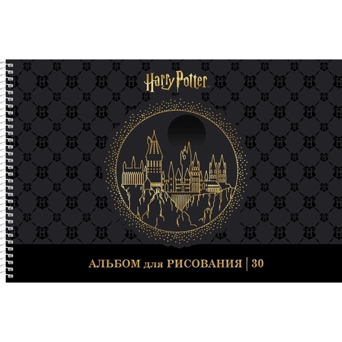 Альбом для рисования А4, 30 листов, на гребне, "Гарри Поттер", обложка мелованный картон, матовая ламинация, 3D фольга, перфорация на отрыв, блок 100 г/м², МИКС