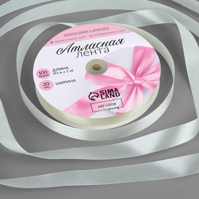 Лента атласная, 20 мм × 23 ± 1 м, цвет белый №01