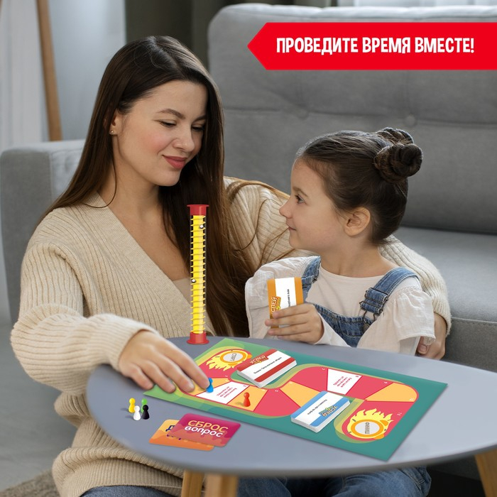 Разложите игровое поле, поставьте фишки на клетку «Старт». Первый из игроков переворачивает таймер с шариками. За это время, а это ровно 5 секунд, нужно дать ответ на вопрос или выполнить весёлое задание с карточки. Победит тот, кто первым дойдёт до финиша. Весёлой игры!