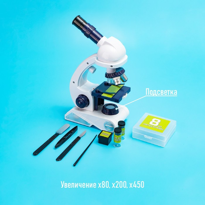 Микроскоп «Юный биолог», увеличение х80, х200, х450, с подсветкой