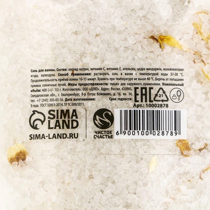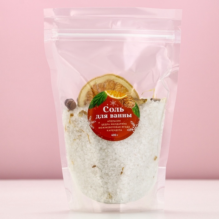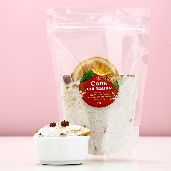 Соль для ванны с апельсином, цедрой мандарина, можжевеловой ягодой и календулой, 400 г, Новый Год